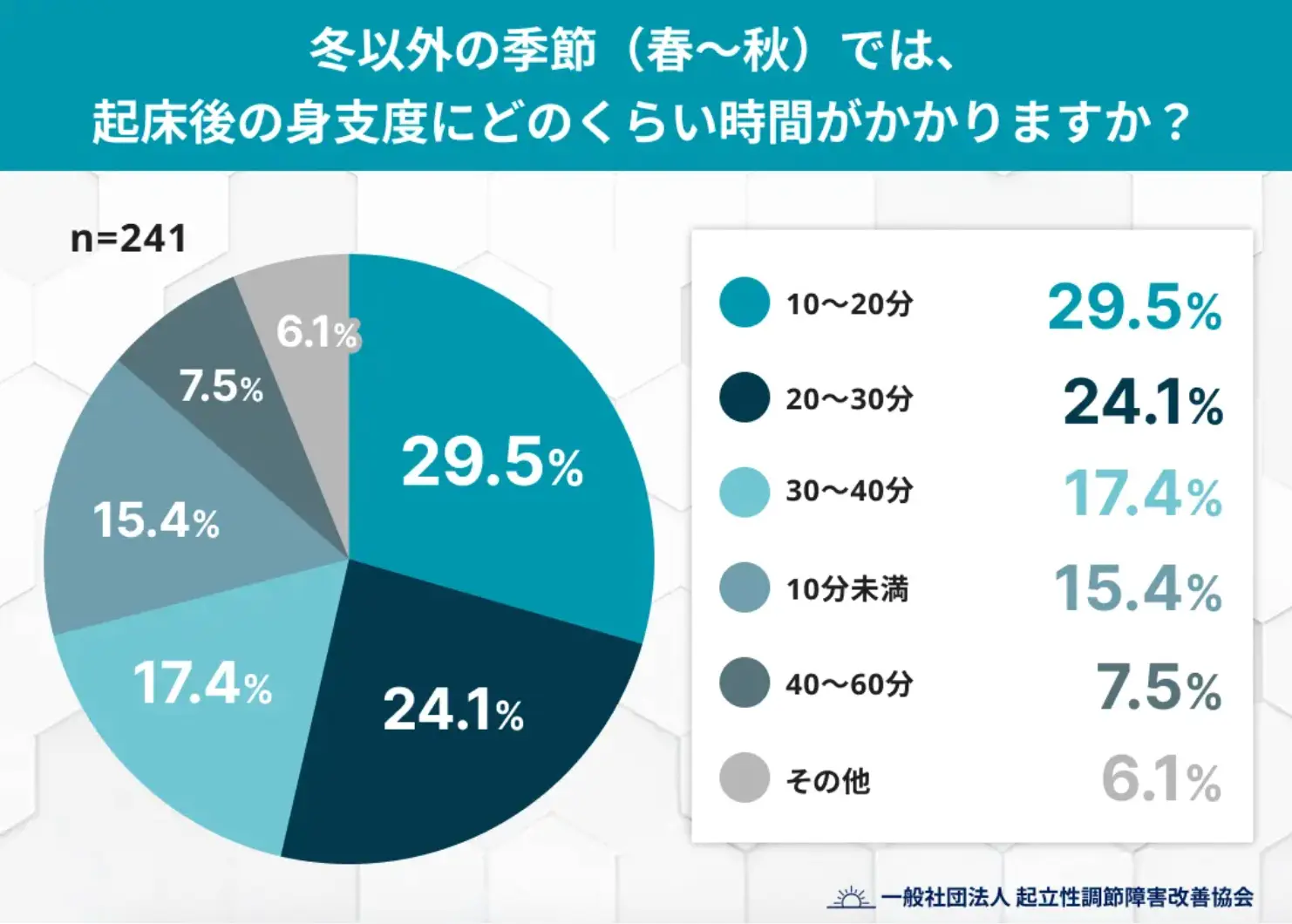 Q3:冬以外の季節(春〜秋)では、起床後の身支度にどのくらい時間がかかりますか?